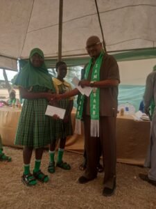 Prof Olusegun Whenu, an alumni of the college presenting a cash reward to most outstanding student in the school in 2025.