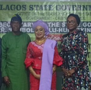L-R: Apostle Kehinde Showemimo, Chairman, Police Community Relations Committee (PCRC) Lagos State, Mrs Bimbola Salu-Hundeyin, Secretary to the Lagos State Government and Ms Toyin Ogunlana, Permanent Secretary, Cabinet Office, during the meeting with PCRC members.